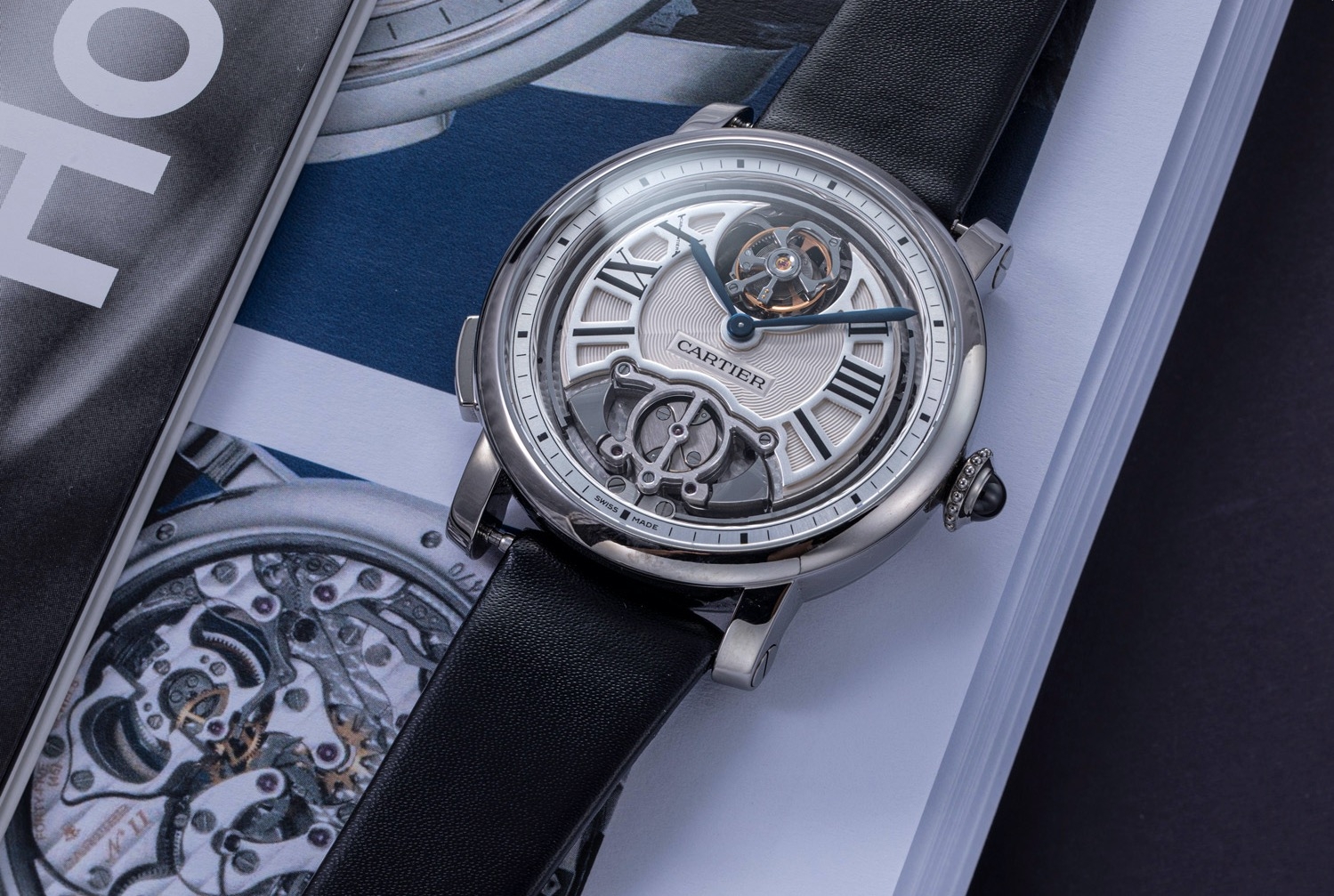 Một trong số những chiếc đồng hồ phức tạp nhất trong bộ sưu tập là Rotonde de Cartier Minute Repeater Flying Tourbillon, được thiết kế theo phong cách cổ điển. Bộ máy bên trong được Cartier xây dựng theo hướng độc đáo. Hầu hết các cơ chế đều xuất hiện trong tình trạng đảo ngược, được nhìn thấy ngay từ mặt số, mà không cần phải lật đồng hồ lại. Cartier cũng kết hợp thêm các giải pháp kỹ thuật, tăng tiếng chuông của chức năng minute repeater trên chiếc Rotonde.